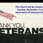 The church is closed today in observance of Veterans Day , ...Chancel Bells5:30 pm - 6:30 pm